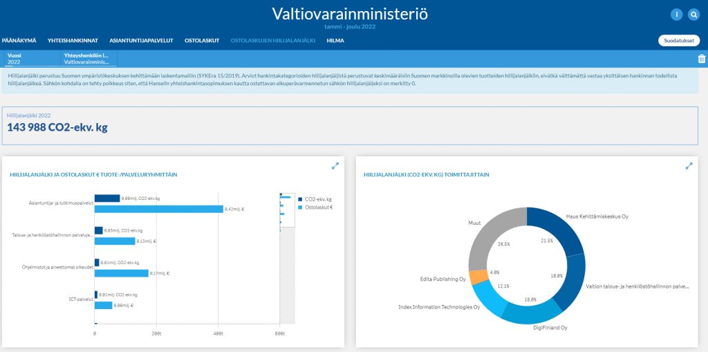 - palveluun on lisätty uusia ominaisuuksia asiakkaiden tarpeiden mukaan muun muassa hankintojen hiilijalanjälkeen liittyen