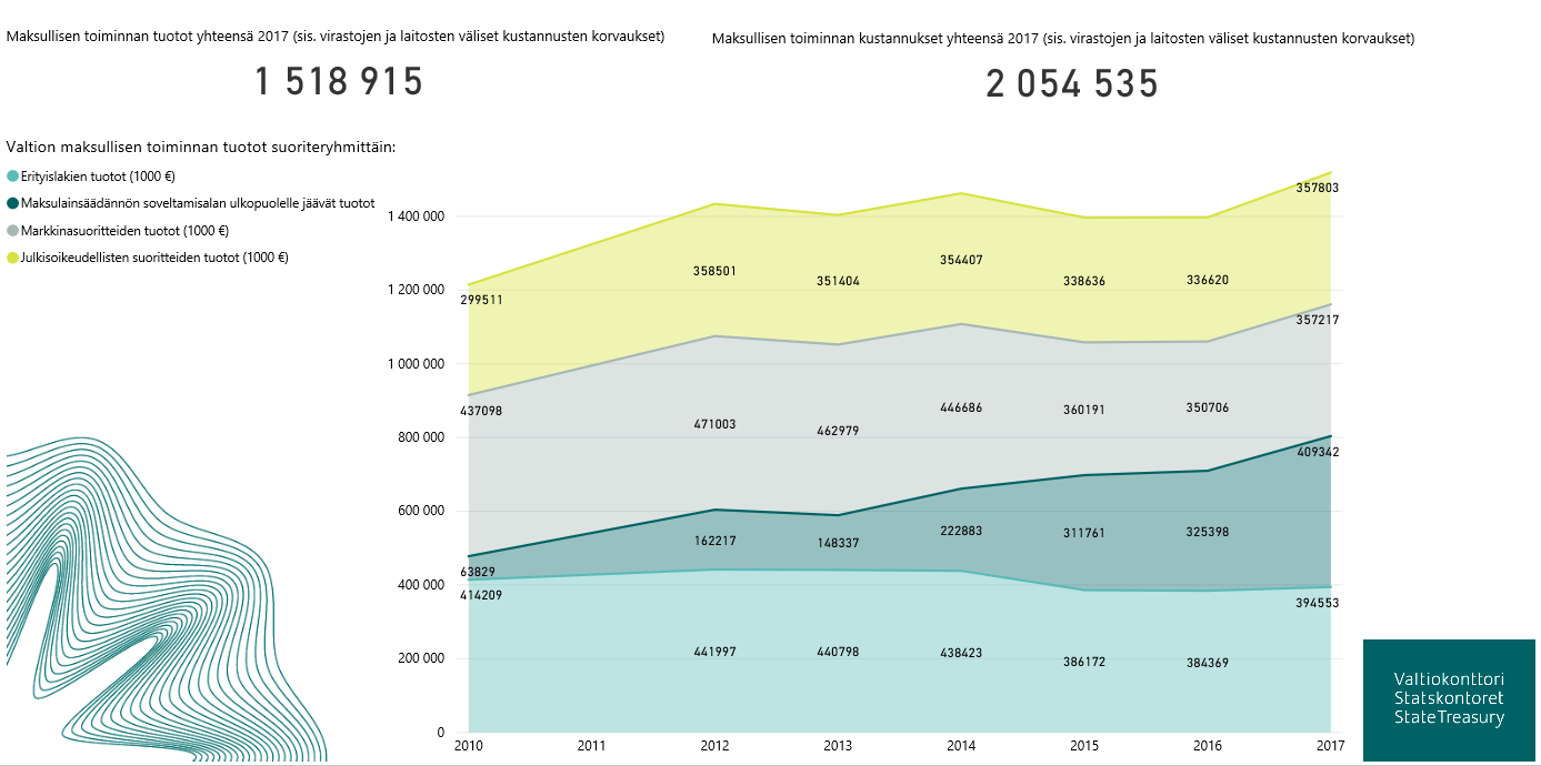 - Analysoimme kirjanpitoyksikkö, hallinnonala ja koko valtion tasolla maksullisen toiminnan ajallista muutosta.